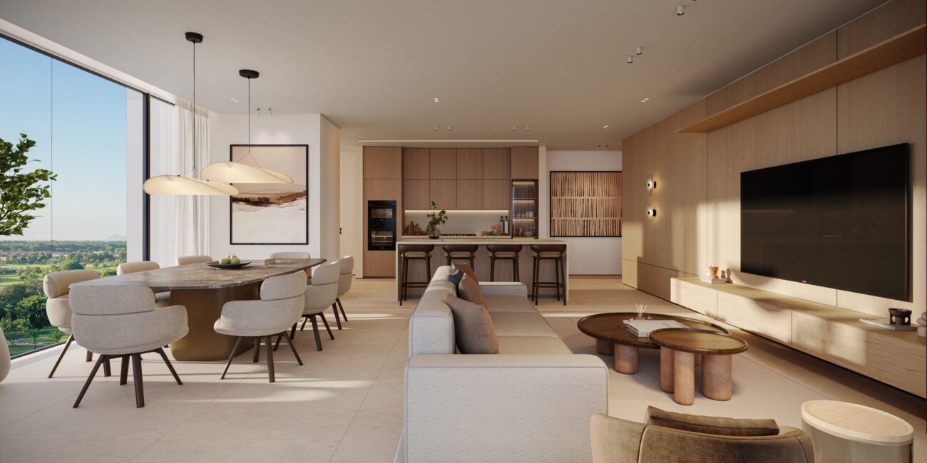 Las residencias han sido diseñadas con distribuciones funcionales, generosas áreas sociales, terrazas habitables y una relación fluida entre interior y exterior. Los apartamentos se desarrollan en un rango de 217 m² a 271 m², ofreciendo espacios amplios para familias que valoran comodidad y diseño.