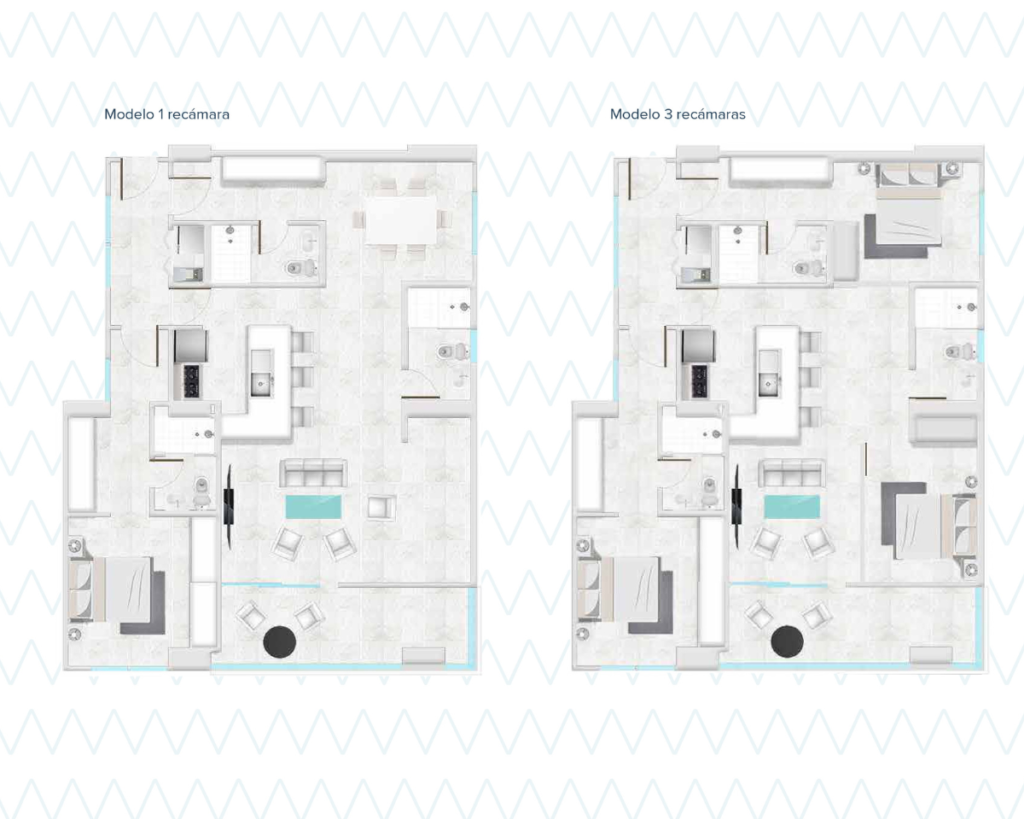 Tipo Lock-Off | 1 Recámara (opción a 3) | 3 Baños | Cocina Abierta | Balcón | Pool Parking