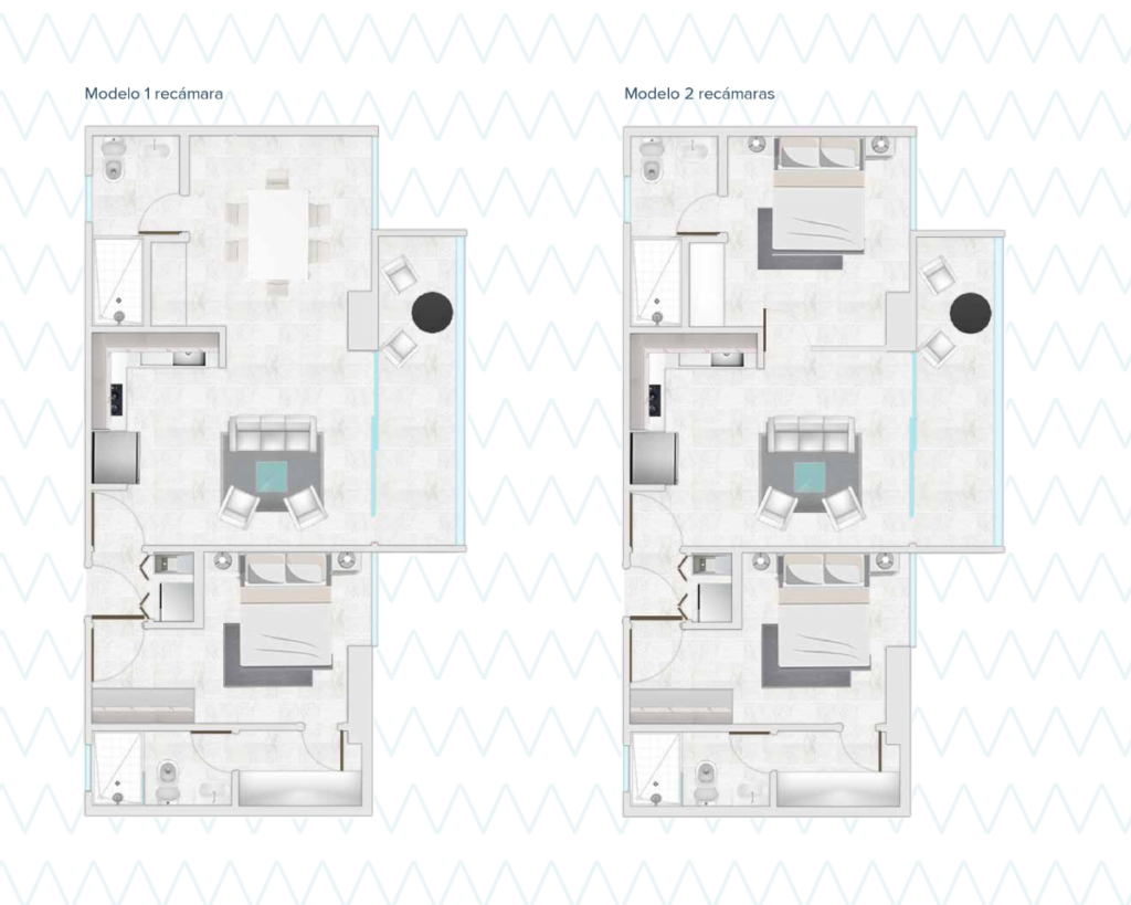 Tipo Lock-Off | 1 Recámara (opción a 2) | 2 Baños | Cocina Abierta | Balcón | Pool Parking