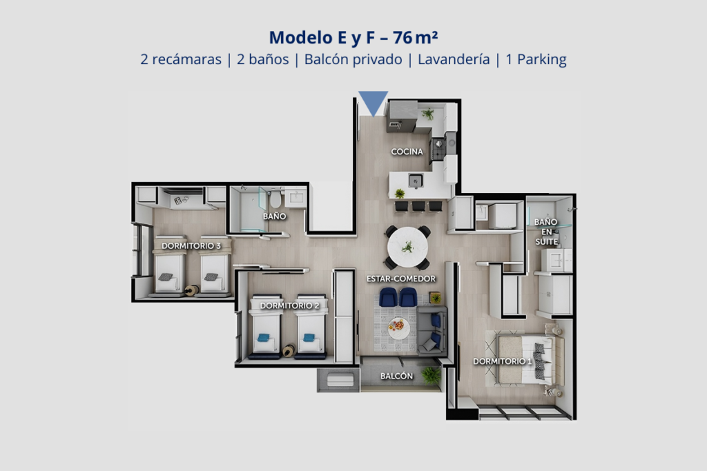 Disponibles en modelos de 1, 2 y 3 recámaras, ofrecen la flexibilidad de adaptarse a diferentes estilos de vida, desde quienes buscan su primer hogar hasta familias que necesitan mayor espacio. Cada residencia cuenta con balcón, excelente ventilación natural y acabados de alta calidad.