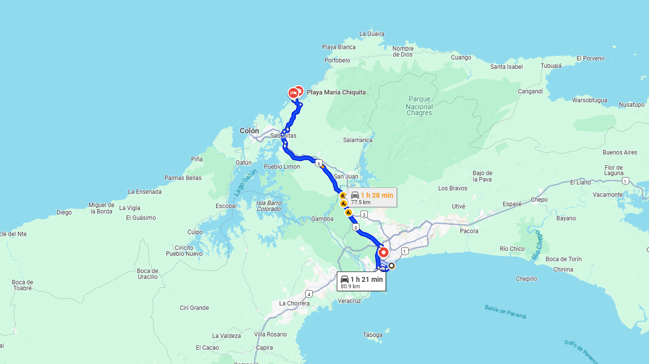 Ubicado a menos de una hora de Ciudad de Panamá; a 20 kilómetros antes de Portobelo, Colón.