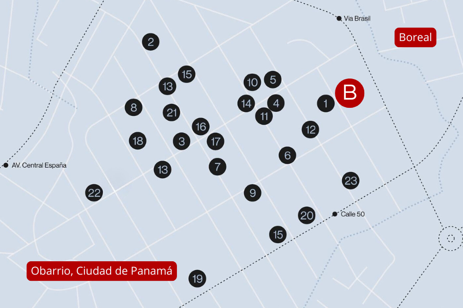 Vivir en BOREAL es estar en el corazón de Obarrio, uno de los barrios más consolidados y caminables de la ciudad. Aquí, la cotidianidad se mezcla con la vitalidad urbana: restaurantes, cafés, supermercados, estudios de bienestar y espacios de encuentro forman parte del recorrido diario, a solo pasos de casa.