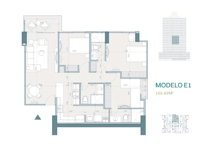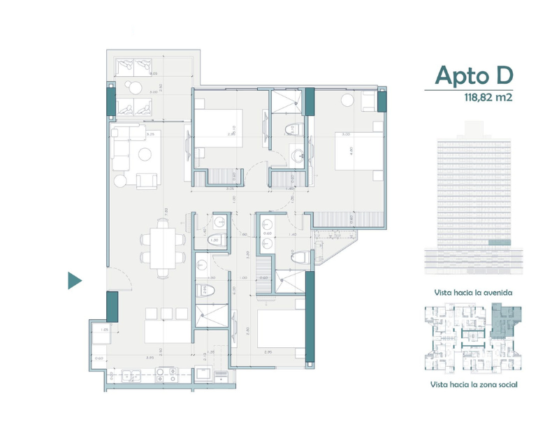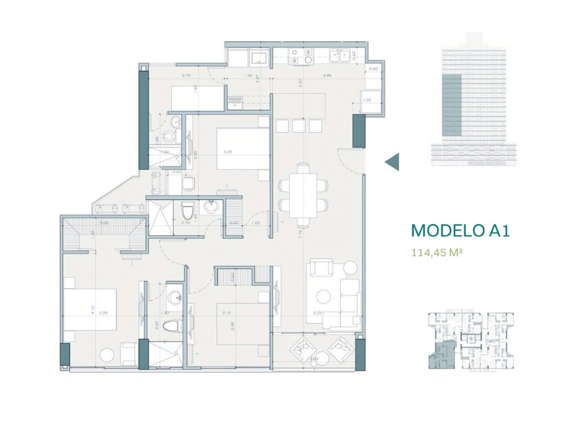 🏢 114, 118 y 123 m² – 🛏️ 3 Recámaras – 🛁 3.5 Baños – 🪟 Balcón – 🅿️ 2 Parking