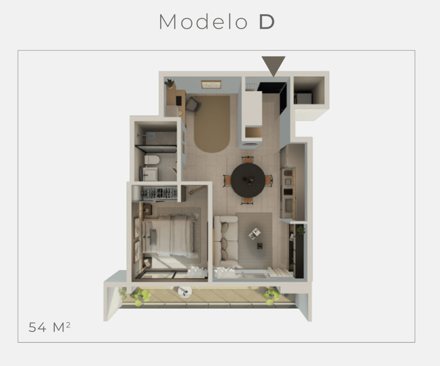 🏢  54 m²  –  🛏️ 1 Recámara  –  🛁 1 Baño  –  🪟 Balcón  –  🅿️ Pool Parking