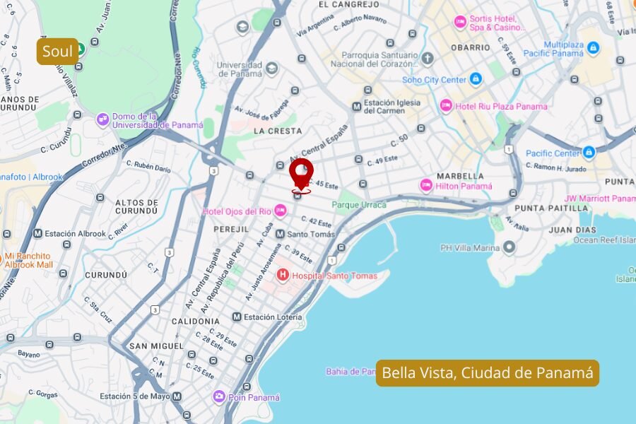 Su ubicación privilegiada en Bella Vista sitúa a los residentes a pasos de la Cinta Costera, estaciones de metro, hospitales, supermercados y el centro bancario, garantizando conectividad y conveniencia. Invertir en SOUL significa aprovechar el potencial de Panamá, un país con estabilidad económica, crecimiento sostenido en el sector turístico y un entorno que ofrece seguridad jurídica y financiera para los inversionistas internacionales