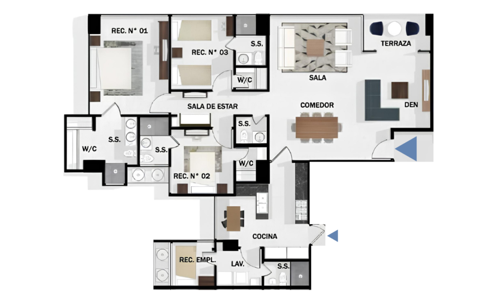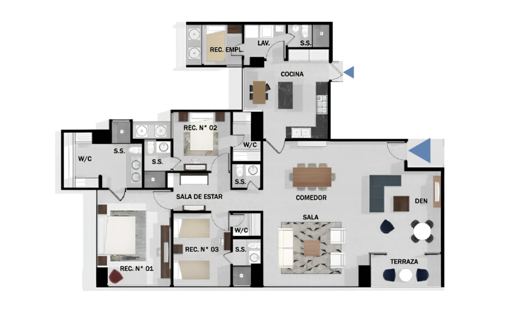3 recámaras + den | 3.5 baños | Sala-comedor amplia