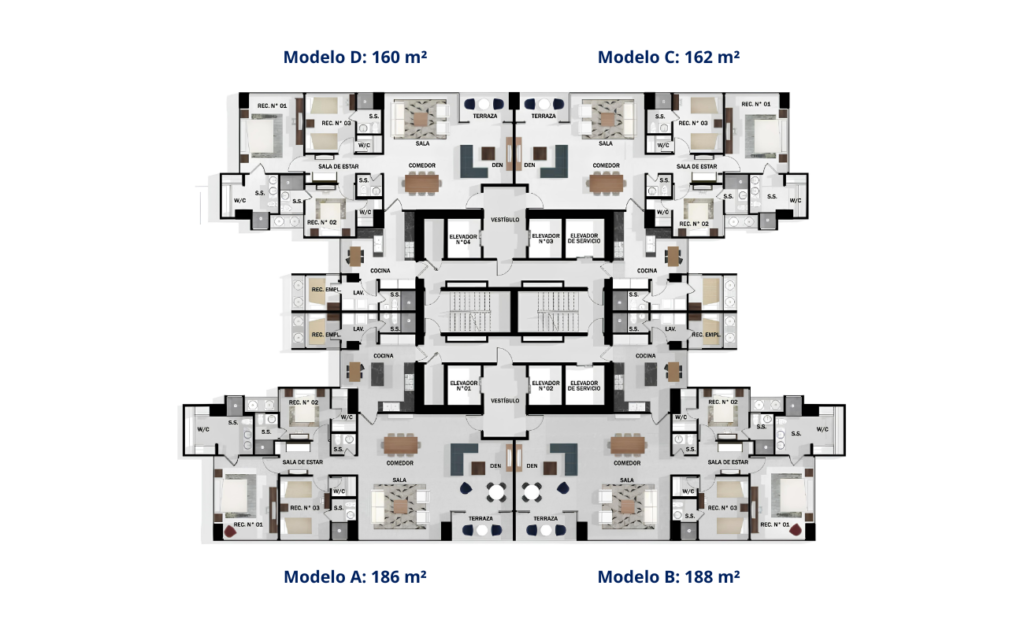🏢 186-188 m² – 🛏️ 3 Recámaras – 🛁 3.5 Baños – 🪟 Terrazan – 🅿️ 2 Parking